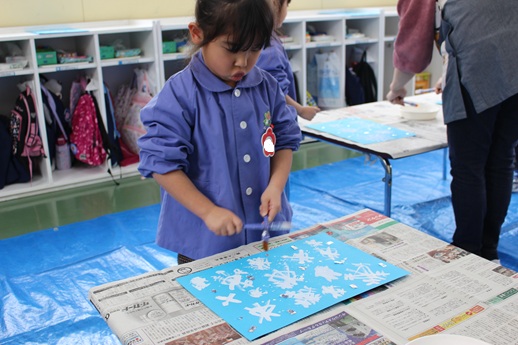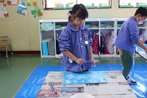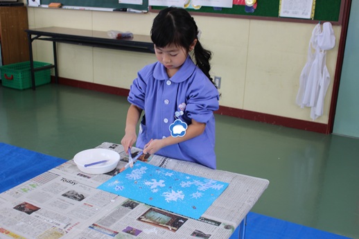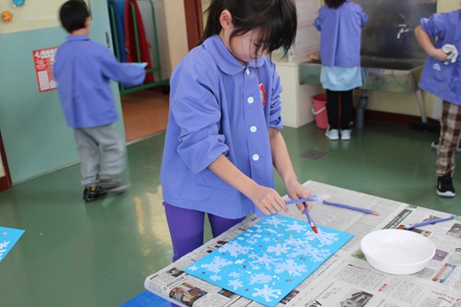 雪の結晶が描けたら「ドリッピング」という技法で