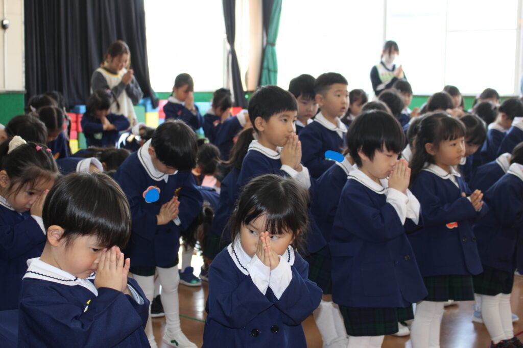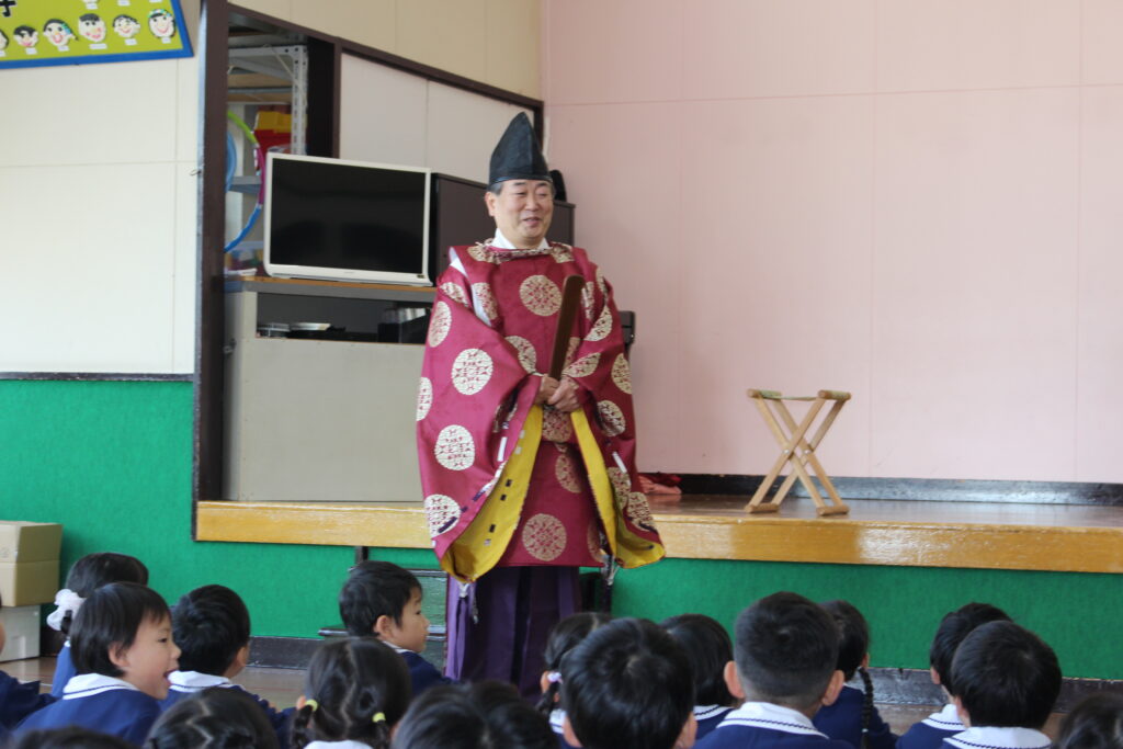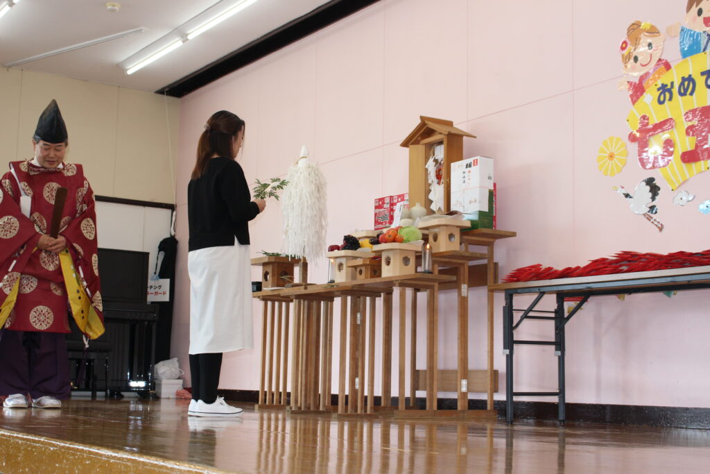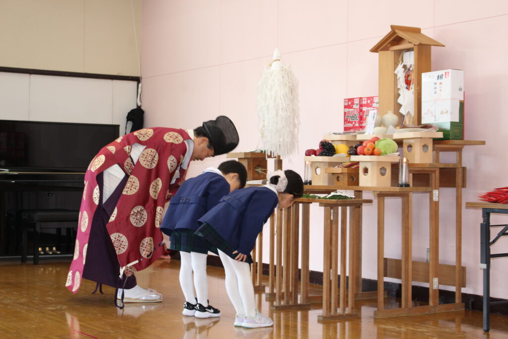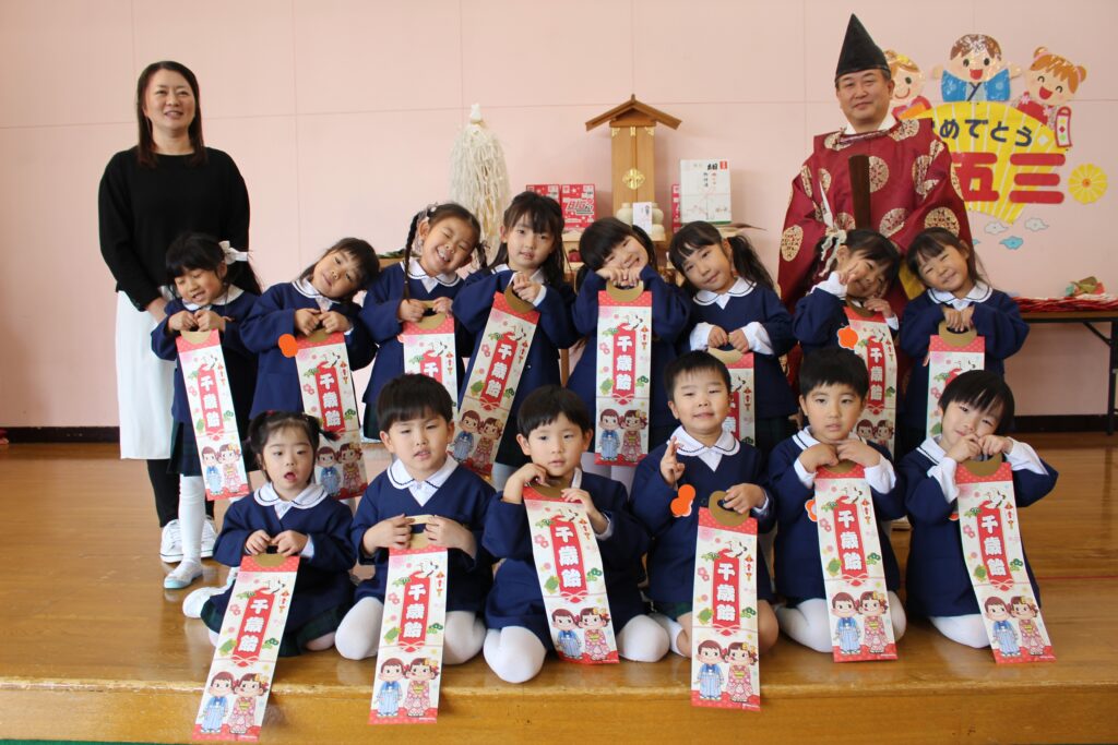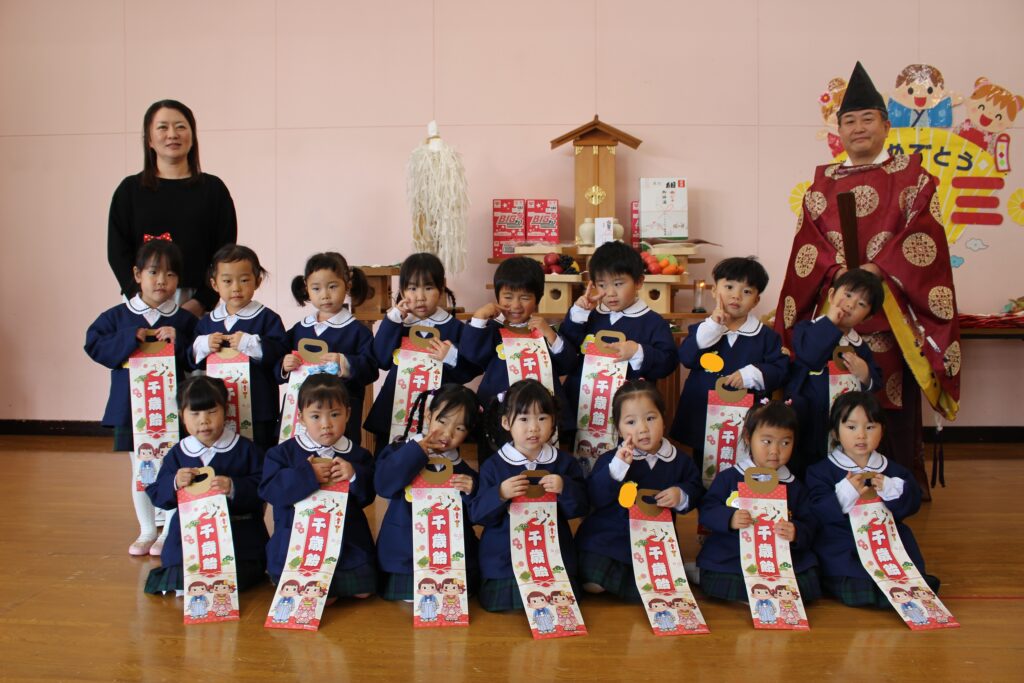 今年度は、川内八幡宮の宮司さんがひまわり幼稚園に来園し、七五三の御祈祷をしてくださいました。