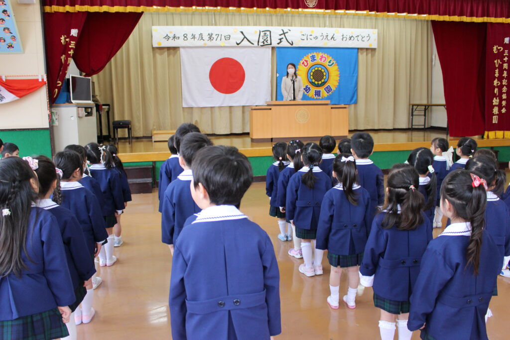 始業式では、いいお耳で園長先生のお話を聞いたり・・・