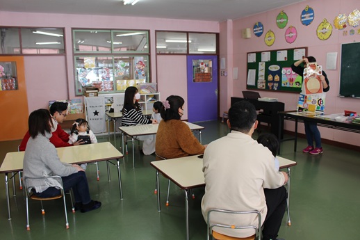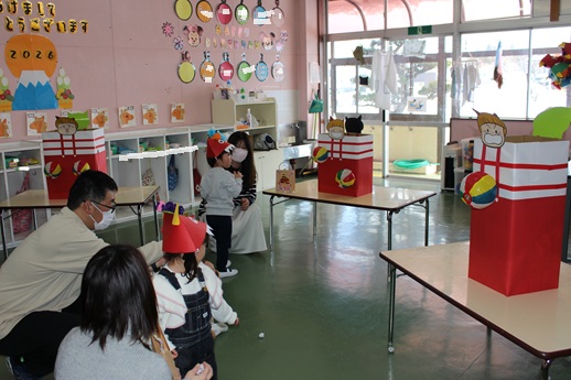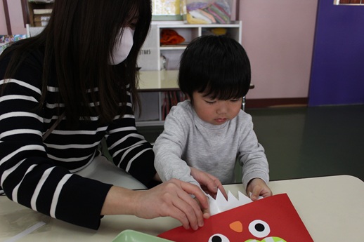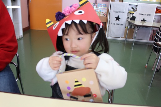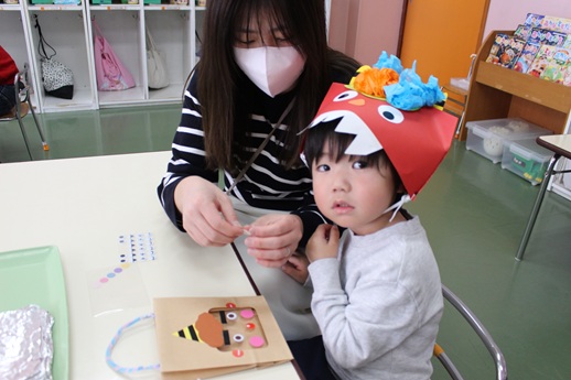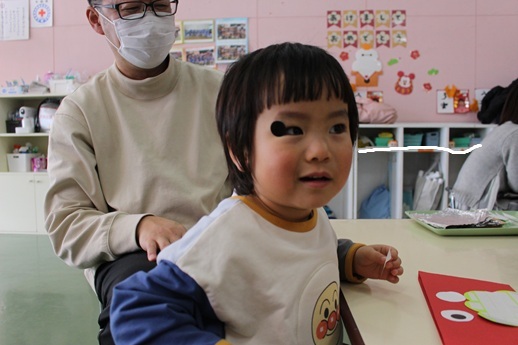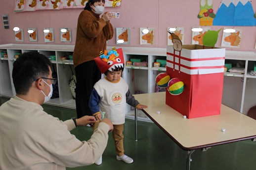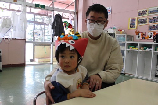 みんなで豆まきのお話を聞きました。「どんな鬼がいるのかな?」