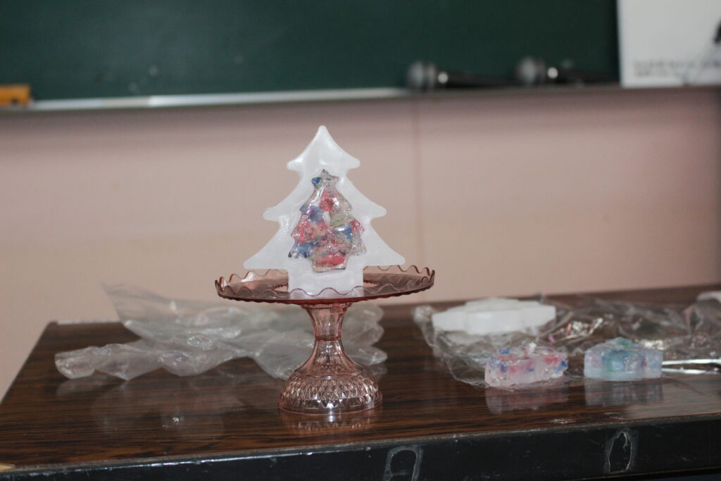 今回はクリスマスに向けて、「ツリーのキャンドル」を作りました。小さな色付きのキャンドルを小さくちぎって 、ツリーの型の中に入れていきます。