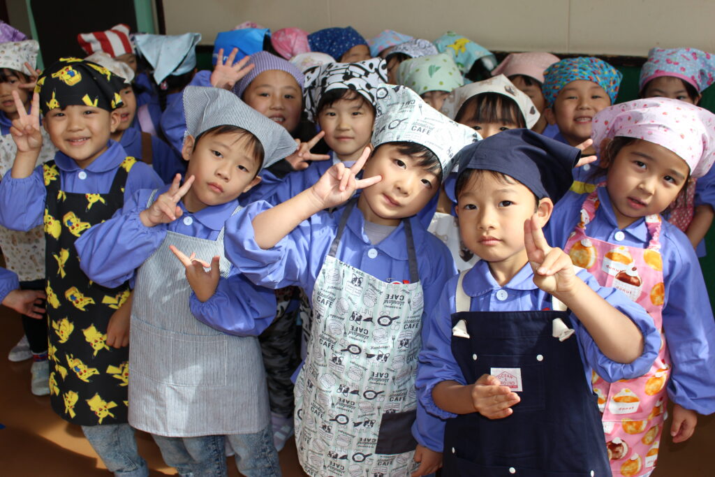 さくら組さんは、エプロン姿に衣装チェンジ!