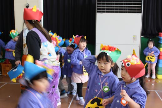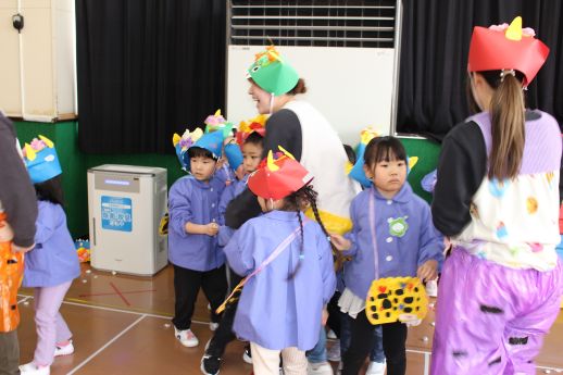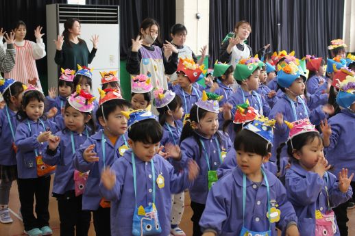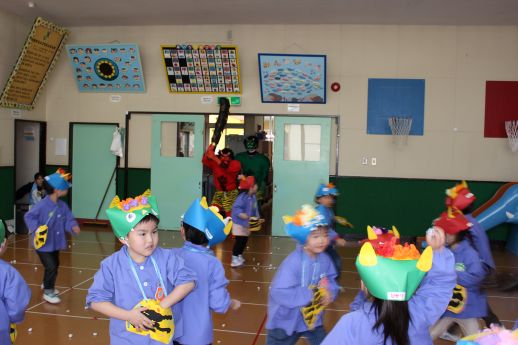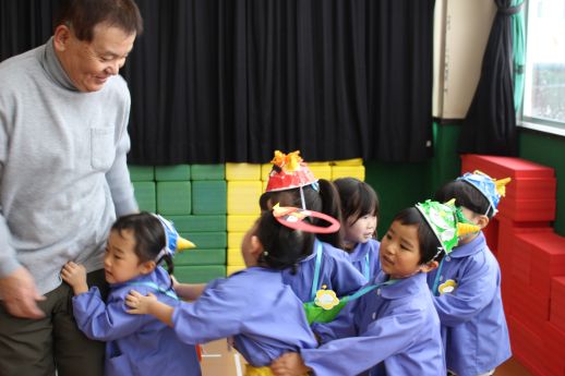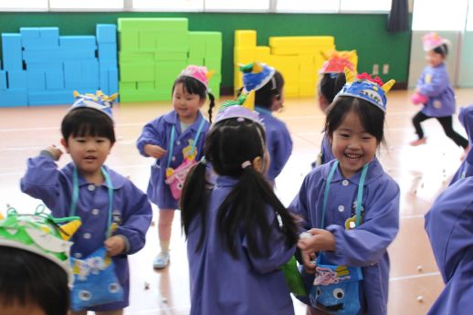 ๅœ’้•ทๅ…ˆ็”Ÿใ‹ใ‚‰ใ€Œใฒใพใ‚ใ‚Šๅนผ็จšๅœ’ใฎใŠๅ‹้”ใฏใ€ใฟใ‚“ใชใŠใ‚Šใ“ใ†ใ•ใ‚“ใ ใ‚ˆใญใ€‚้ฌผใŒๆ€–ใใชใ„ใŠๅ‹้”๏ฝž๏ผŸใ€ใจ่žใ‹ใ‚Œใฆใ€ใ€Œใฏ๏ฝžใ„ใ€ใจใŸใใ•ใ‚“ใฎใŠๅ‹้”ใŒๆ‰‹ใ‚’ๆŒ™ใ’ใฆใ„ใพใ—ใŸใ€‚้ ผใ‚‚ใ—ใ„ใงใ™ใญใ€‚
