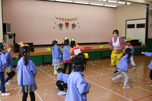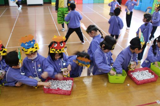 2ๆœˆ๏ผ“ๆ—ฅใฏ็ฏ€ๅˆ†ใงใ™ใญใ€‚ๅนผ็จšๅœ’ใงใฏ่ฑ†ใพใไผšใ‚’่กŒใ„ใพใ—ใŸใ€‚ใใฎๆ™‚ใฎๆง˜ๅญใ‚’็ดนไป‹ใ—ใพใ™ใ€‚