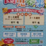 2025年9月18日 / 最終更新日 : 2025年9月18日 himawari お知らせ 一日体験入園のお知らせ🌻 10月11日(土)、来年度入園希望のお子さまや見学希望の方を対象とした一日体験入園を行います。入園に期待が持てる楽しい体験入園となるよう計画していますので、たくさんのご参加をお待ちしております😊
